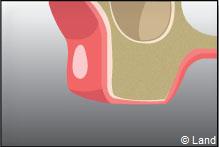 La fermeture de la cavité s’effectue souvent à l’aide de points de suture servant à réunir les bords de la gencive.